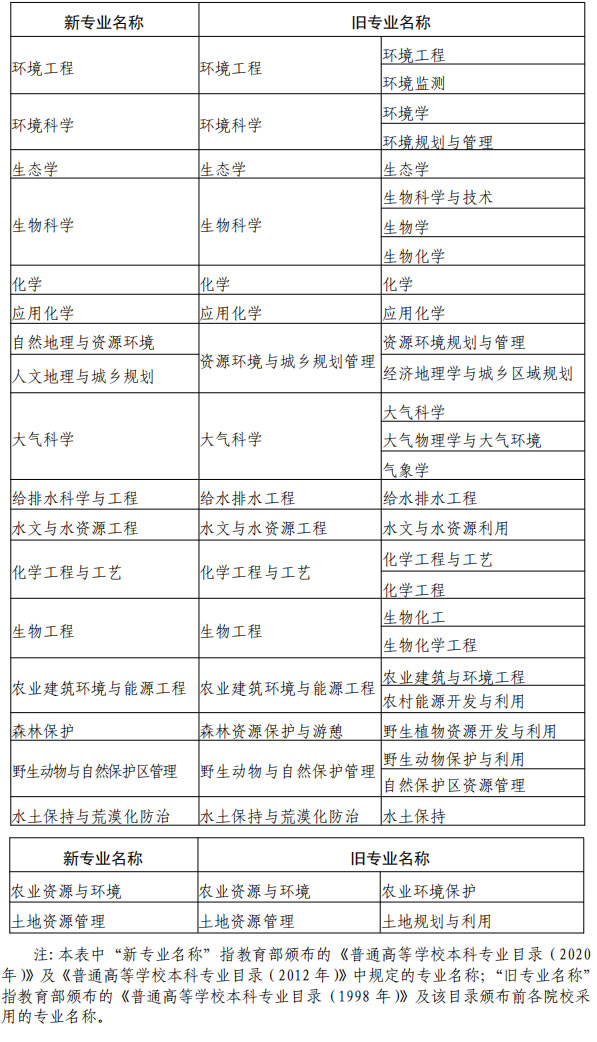 環(huán)境保護相關(guān)專業(yè)新舊對應表